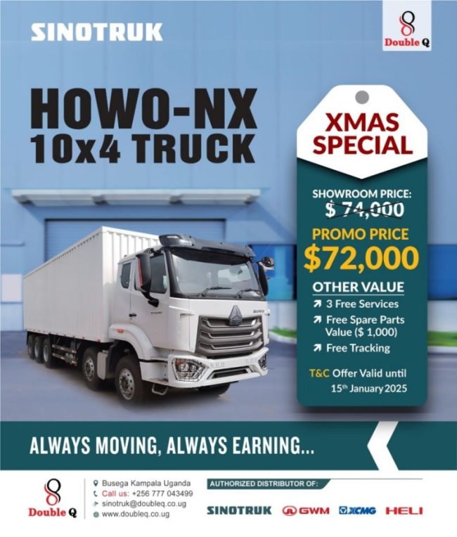 Meanwhile Double Q Uganda invites customers, partners, and the public to experience the newest Sinotruk models in person at their showroom situated at Plot 414, Kasumba Square Busega.