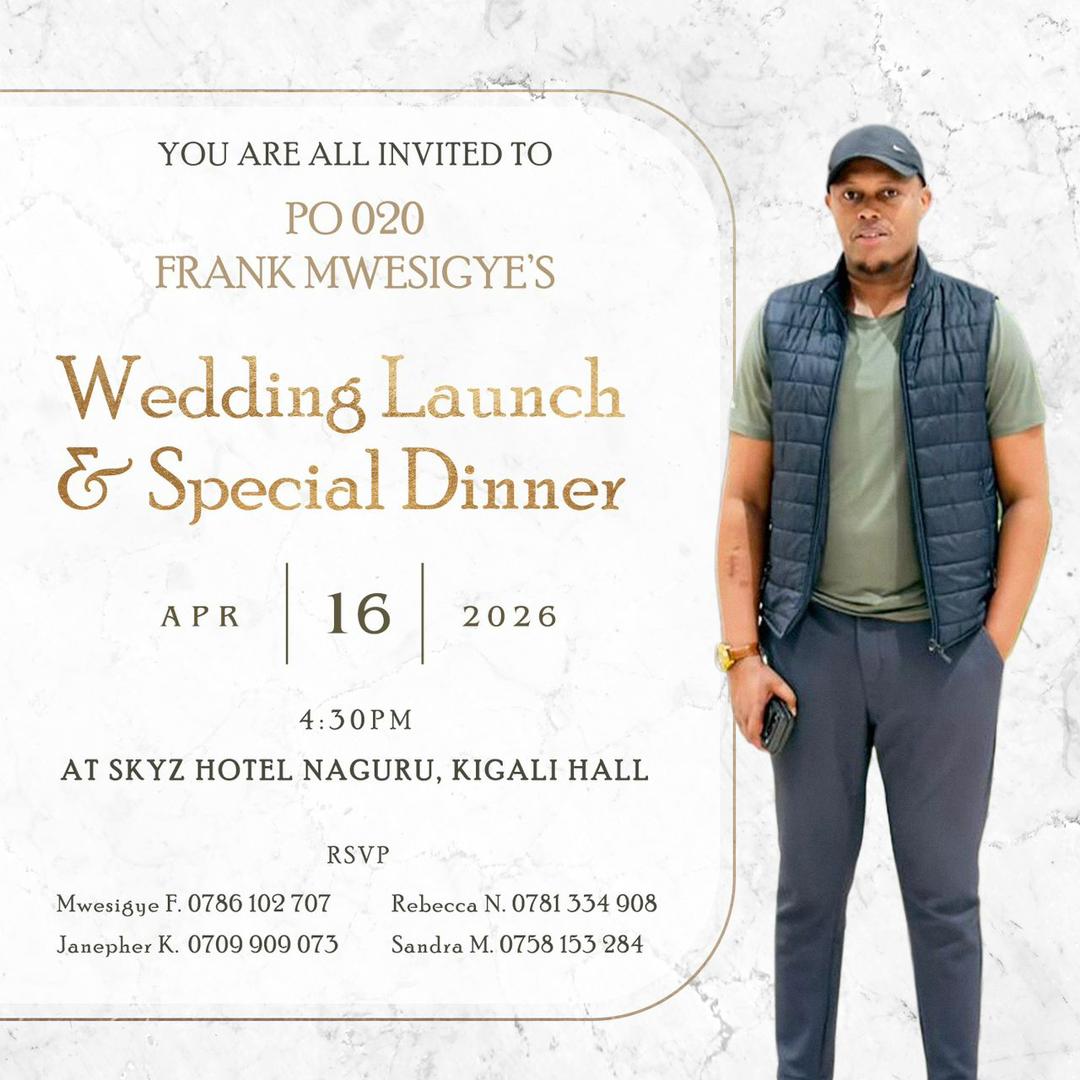 The wedding launch and special dinner is slated for 16th April 2026 at Skyz Hotel Naguru’s Kigali Hall.