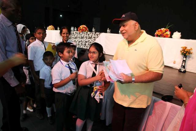 Sudhir Ruparelia with students of the school at official opening ceremony