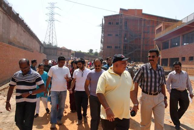 Sudhir with son Rajiv and other officials at the school complex