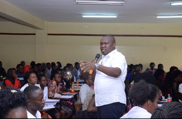 YMCA students who did not hide their excitement upon seeing the seasoned comedian flooded the venue and before the lecturehad started, they were yarning for selfies with the Ambassadorof Ombokolo.
