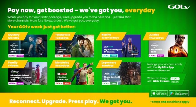 Kampala: From Monday, 16 June to Thursday, 31 July 2025, DStv and GOtv customers will enjoy more entertainment for less because We Got You. When you pay your subscription on either platform, you’ll be automatically upgraded to the next package, at no extra cost. That means more channels, bigger stories, and unbeatable value for your money.