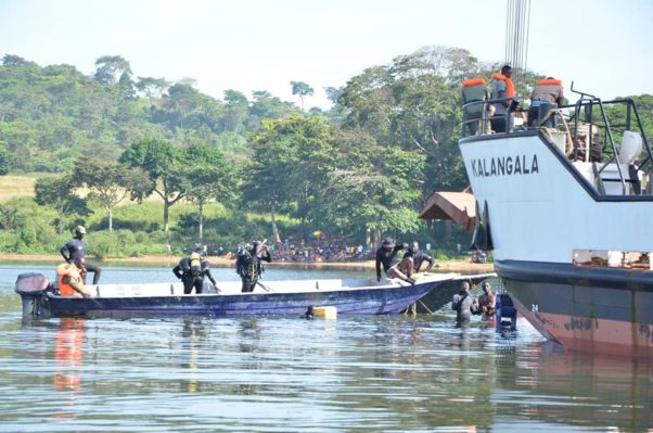 Therefore, following different attempts to pull the boat wreckage out of the water, a joint team of Uganda Police and UPDF Marine teams, the Ministry of Works with the help of MV Kalangala today successfully pulled the boat wreckage from underneath the water. Strategies are now being laid to tow the boat wreckage to the mainland.
