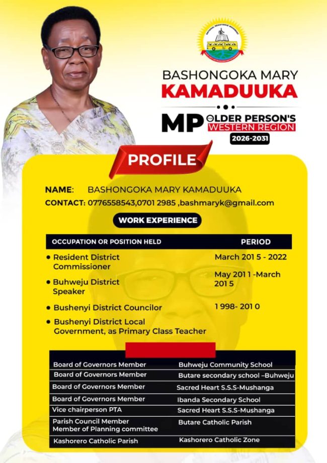 Why Hon. Bashongoka Mary Kamaduuka should be voted as Western Region MP for Older Persons